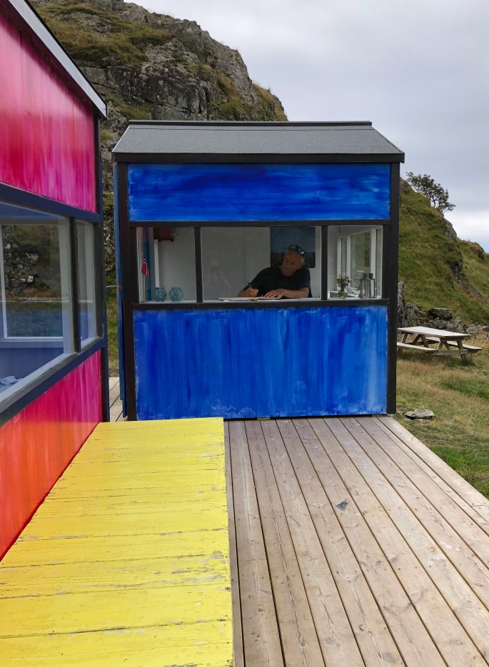 Nåväl, vi gick och gick och kände hur regnet föll, humöret föll, blodsockret föll. Fötterna var blöta av regnet… Vad gör man då, på sin väg mot det flytande hemmet? Jo, köper godis! I Norge kostade godiset runt 179 NOK/kg. Här i DK, har de ju inte någon ”sockerskatt” på sötsaker. Vi köpte två biffiga fudge på hemvägen.