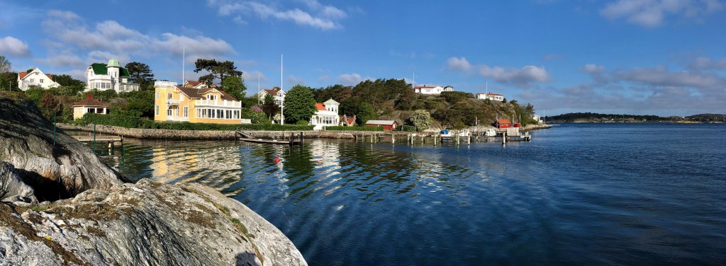 Styrsö har likheter med Stockholms skärgård och dess stora grosshandlarvillor. Fin strandpromenad. Vyn kan lika gärna vara från Norge…