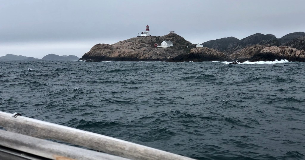 Dags att ta oss runt Lindesnes, Norges sydligaste udde. Seglade några timmar ”inomskärs” innan vinden mojnade. Utanför de skyddande skären hade vi inte kunnat föra segel över huvudtaget.